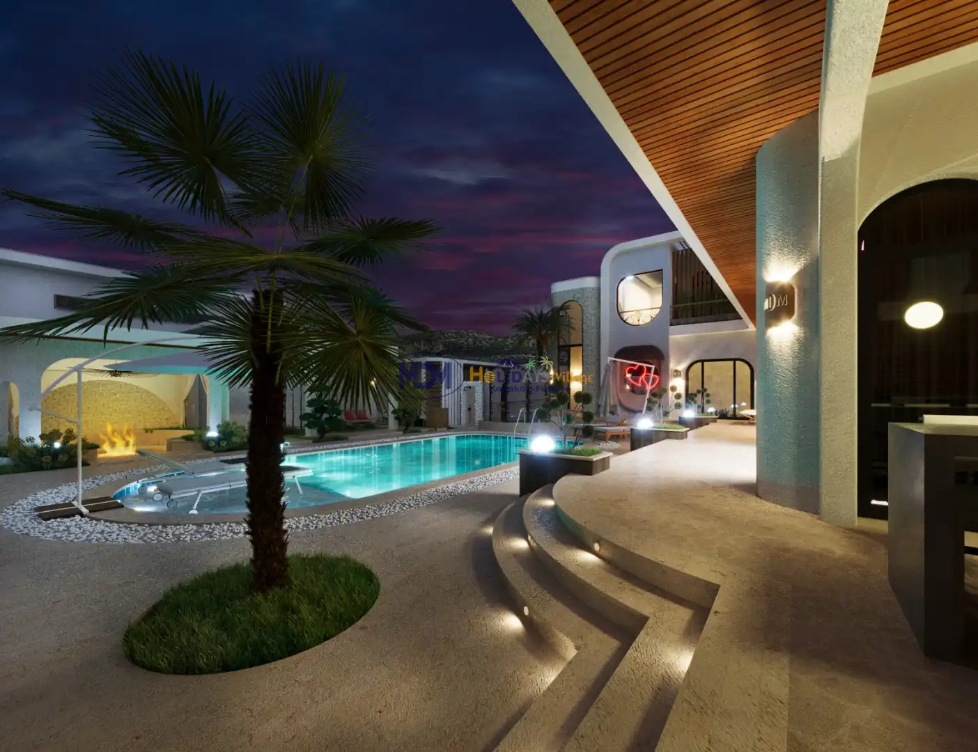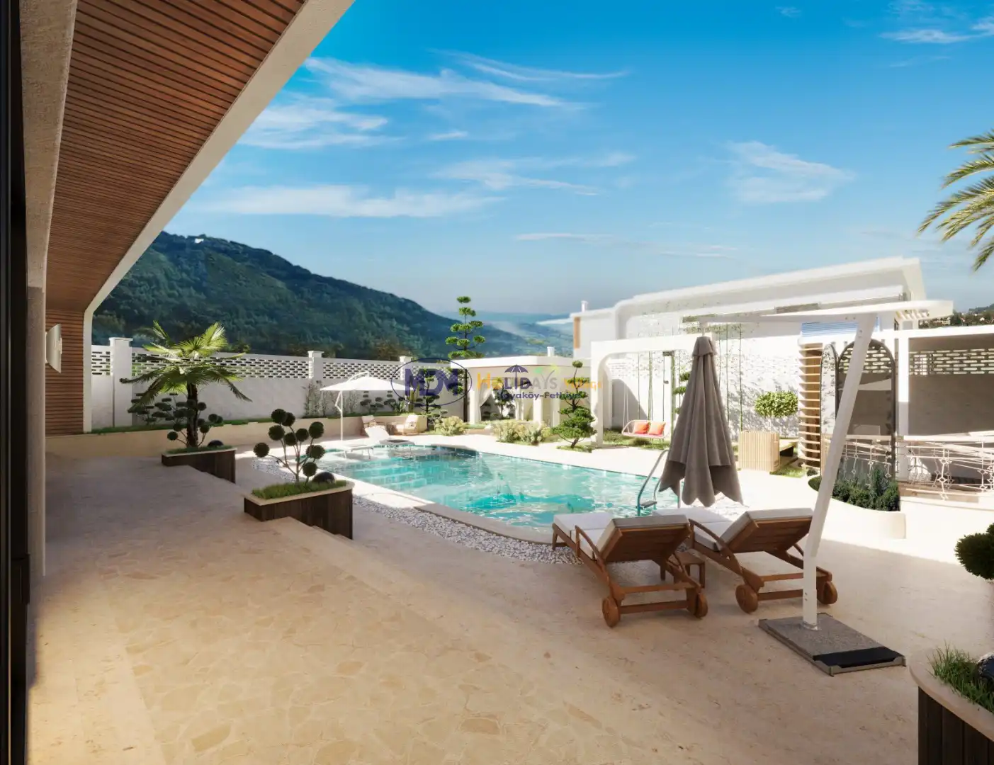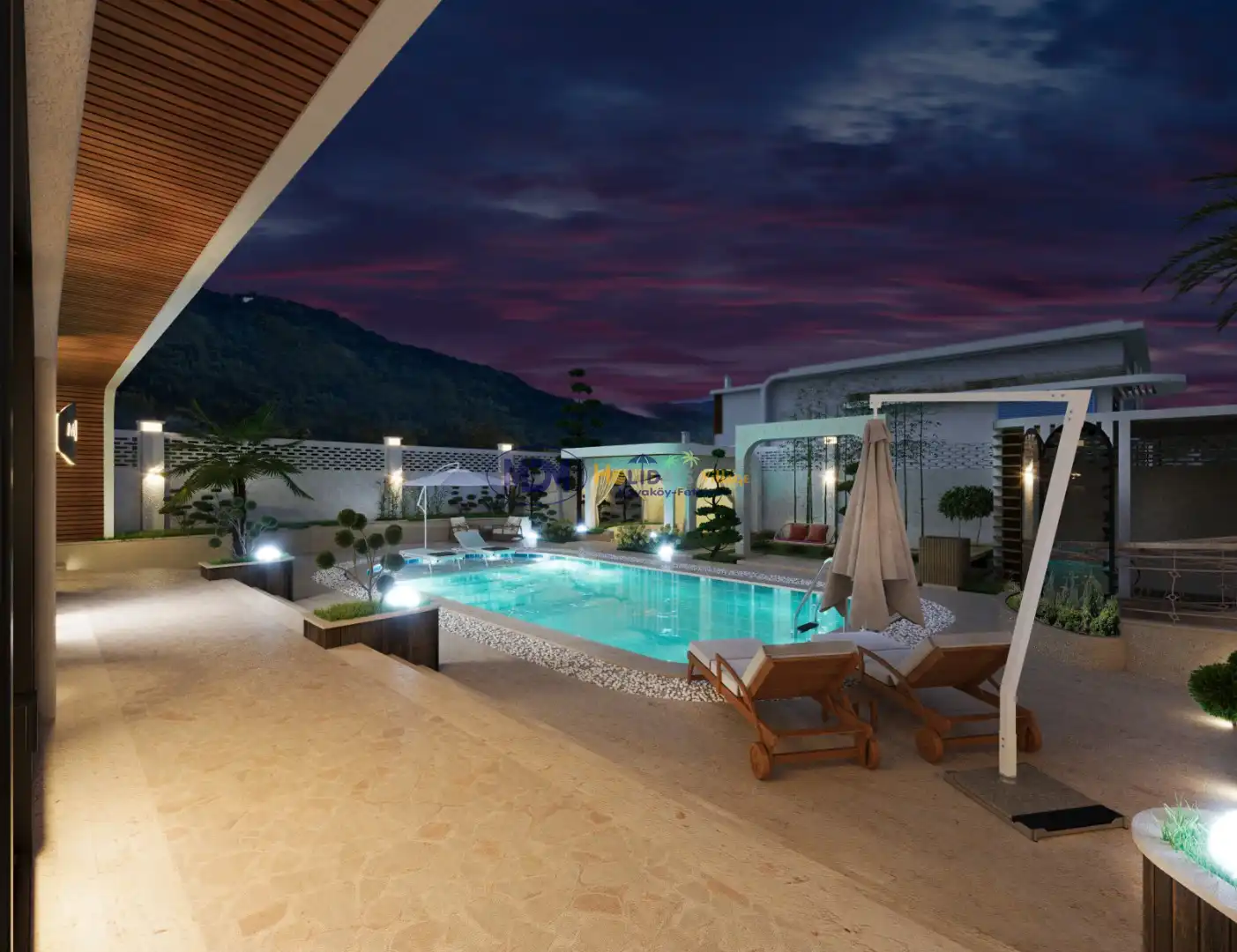 - Korunaklı havuz bahçe